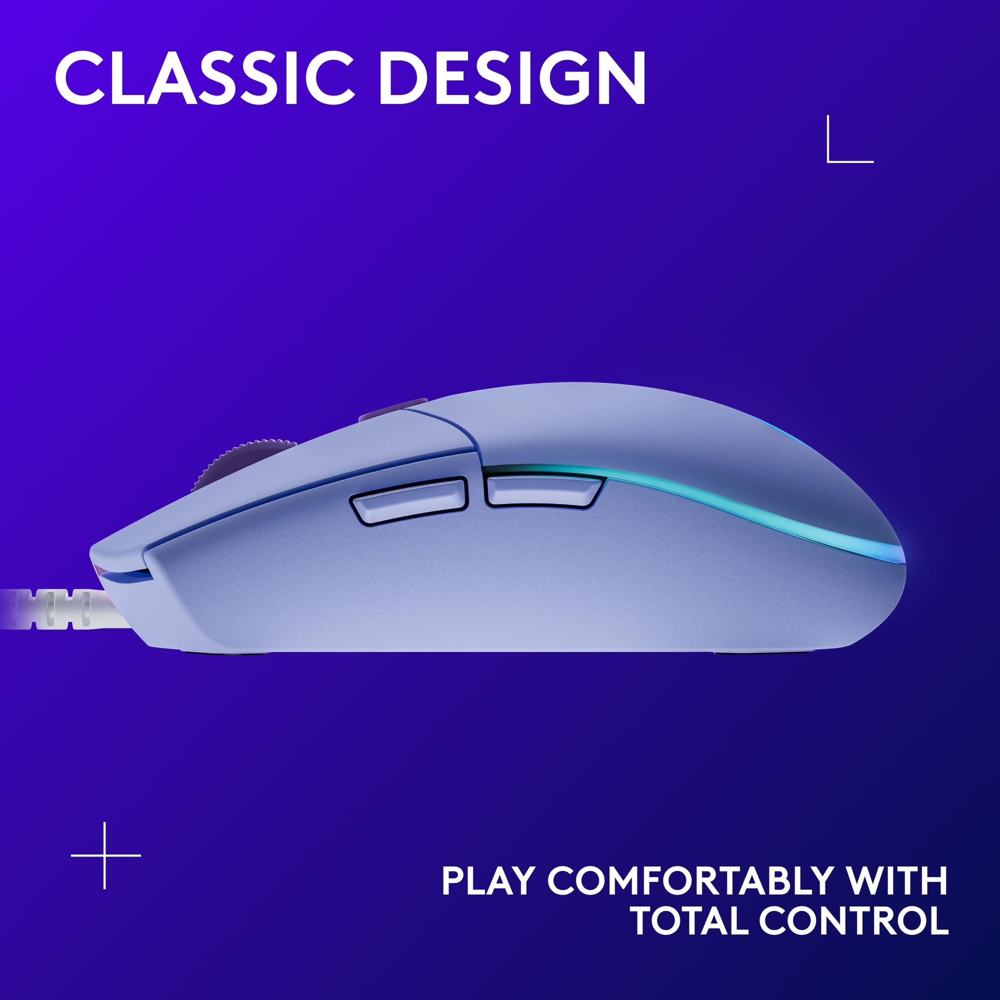 Logitech G203 LIGHTSYNC Gaming Mouse with Customizable RGB Lighting, 6 Programmable Buttons, Gaming Grade Sensor, 8K DPI Tracking, Lightweight - Lilac